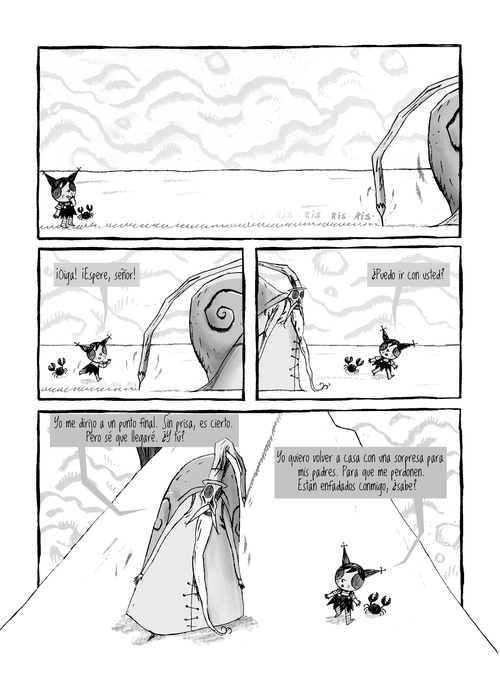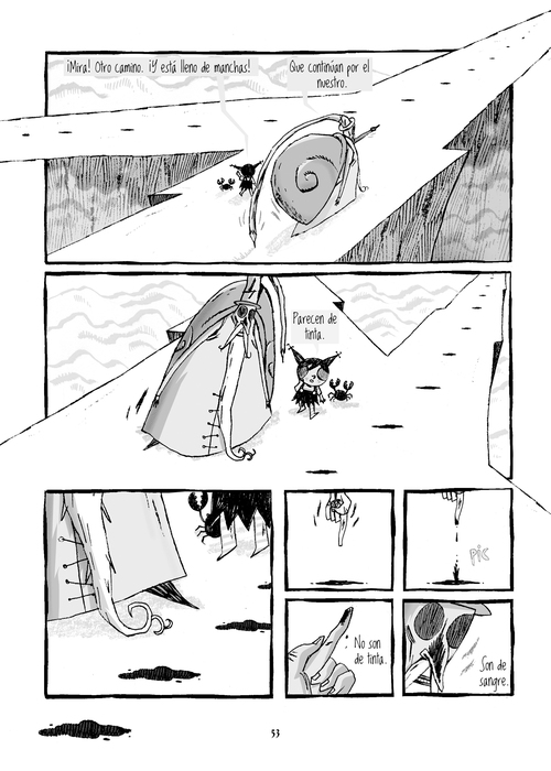 Esta idea es el germen de Malaria, un cuento gráfico donde Jali presenta su lado más poético y que gira en torno a la muerte de una niña y a la angustia de unos padres a los que les espanta pensar en la posibilidad de que su hija pequeña pueda seguir existiendo en “otro mundo”, sola, lejos de ellos.