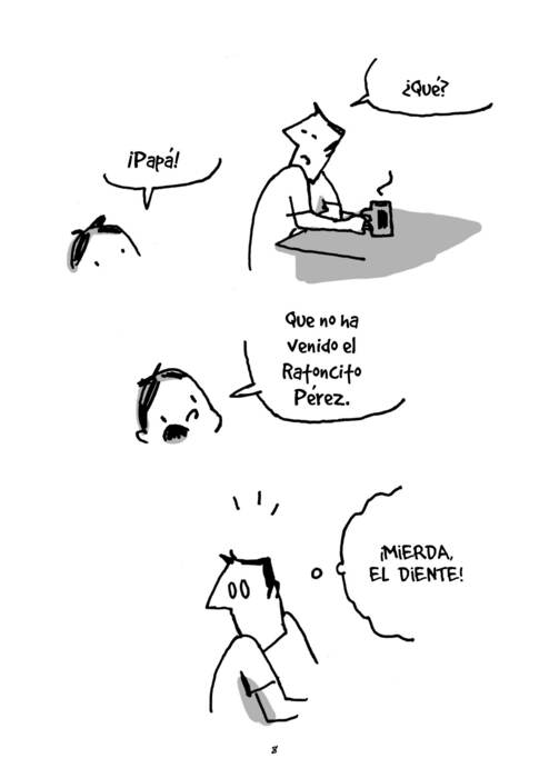 Guy Delisle juega con nuestro sentimiento de culpa y se adjudica, para mayor disfrute de sus lectores, el papel de padre irresponsable y canalla. Delisle se divierte pervirtiendo el imaginario infantil y actúa como un adulto mezquino ante sus hijos sin prestar atención a las consecuencias de su proceder y del contenido de las historias que les cuenta.