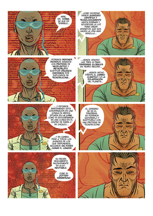 A big meteorite inexorably approaches Earth, life in this corner of the Universe has the days numbered. Alexander Yorba, a famous architect, who has been entrusted with the task of realizing a citadel on the Moon, he is diagnosed with a strange brain tumor which is shutting down his life. A science fiction graphic novel about a World and a person who struggle between abandoning themselves to a tragic end or fighting to the last consequences for deserving a better destination for both.