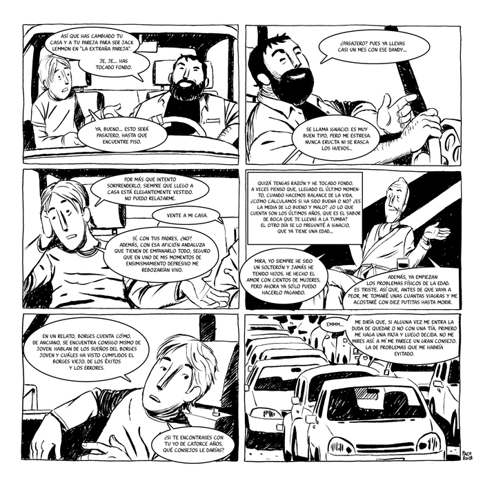 Realizado originalmente en paralelo a Arrugas, hace diez años, Como cagallón por acequia nació de la propuesta de Juanjo el Rápido de que Paco colaborase en la revista Humo con alguna historia por entregas. Paco, concentrado en el trabajo de Arrugas, utilizó esta comedia sentimental como válvula de escape, para relajarse escribiendo y dibujando, y simplemente hacer páginas por placer.