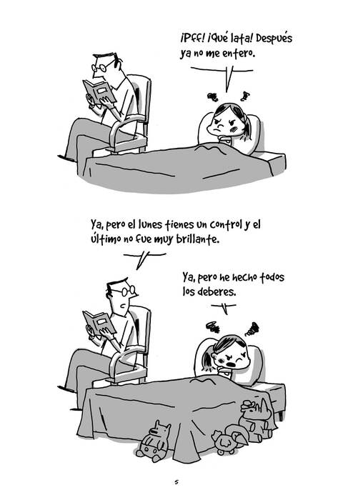 Transformar la lectura de antes de dormir en una clase de gramática o en una fábrica de pesadillas, rivalizar en puerilidad con los hijos, enseñarles todo tipo de tonterías, ganar con trampas y desafiarles a quién lo hace peor... ¿Guy Delisle, autor de obras como Shenzhen, Pyongyang, Crónicas birmanas y Crónicas de Jerusalén, un mal padre? No, simplemente un autor de historietas que busca las ideas allí donde se encuentran y las adereza con un agudo sentido de la observación y una gran capacidad para reírse de sí mismo.