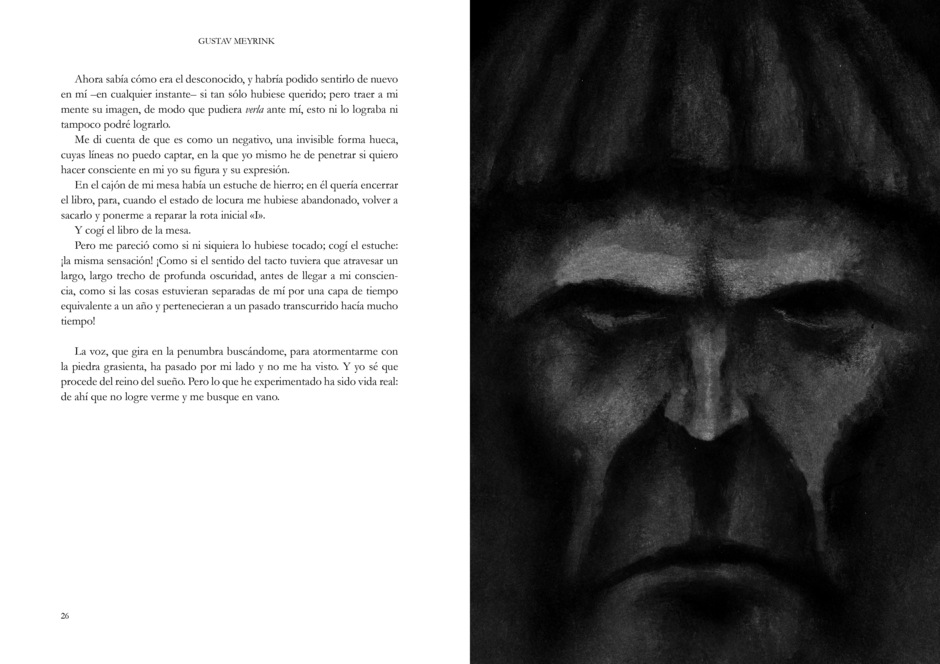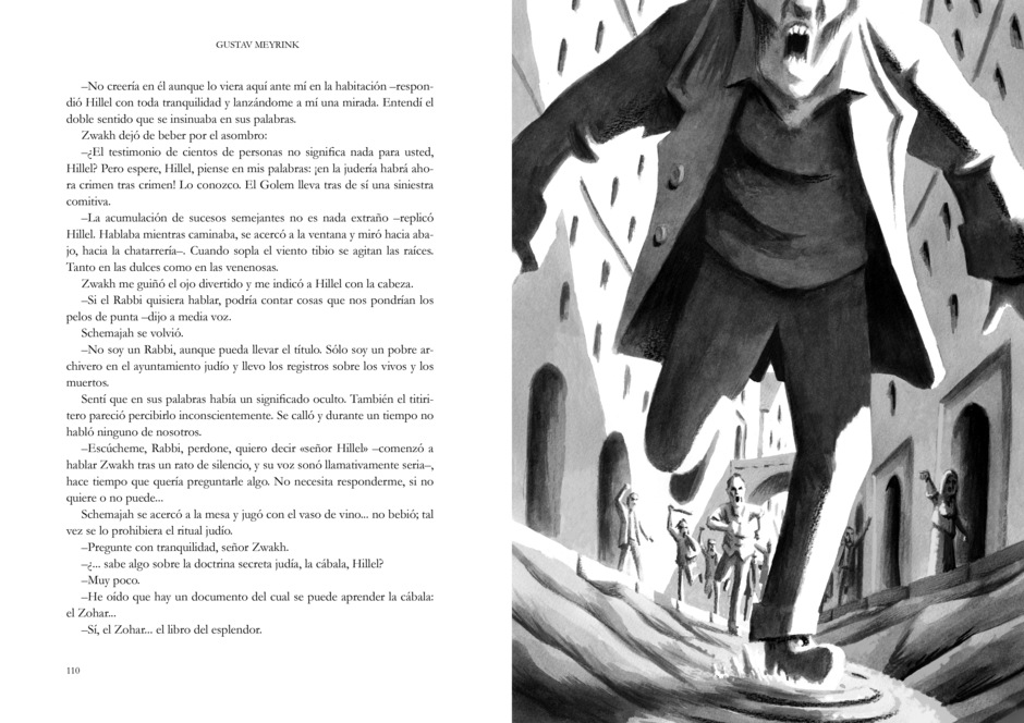 El Golem, una obra del escritor vienés Gustav Meyrink con ilustraciones del dibujante Santiago Valenzuela, continúa –junto con Solomon Kane, de Robert E. Howard, revisitado por David Rubín– la colección Clásicos Ilustrados de Astiberri, en la que una recopilación de relatos, o como en este caso una novela completa de un autor de referencia de la literatura, es interpretada gráficamente por un dibujante de cómics con una serie de ilustraciones distribuidas a lo largo del libro principalmente a toda página.