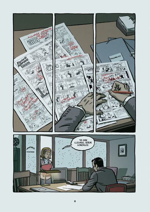 In the Spain of 1957, being a strip cartoonist was a trade. Rather than artists, they were cartoon workers-for-hire. They charged Bruguera by the page, worked on a job-byjob basis, and gave up their original ideas and their author rights in exchange for collecting a paycheck. But that same year, five extraordinary cartoonists famous for their characters dared to rebel.