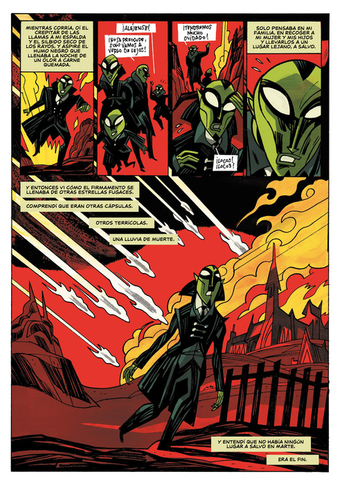 to return time and again, re-reading it, reconstructing it, and recreating it with each new generation. In the 21st century, this immense apocalyptic fantasy continues to attract us as much as it did on the first day, continues to be the shadow at which we cannot stop looking. The War of the Worlds never ends. And Santiago García and Javier Olivares contribute their version in a comic.