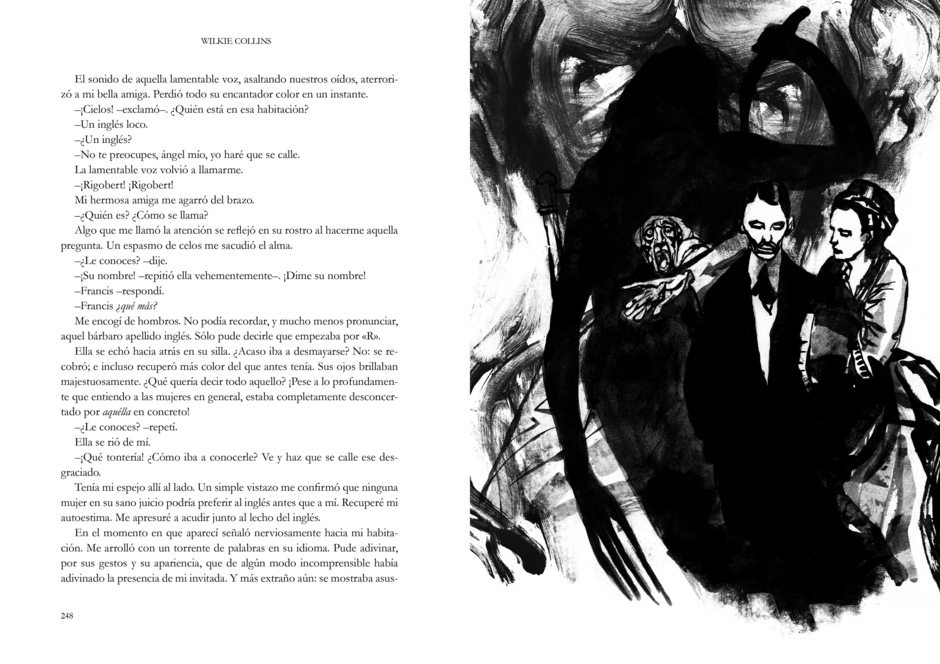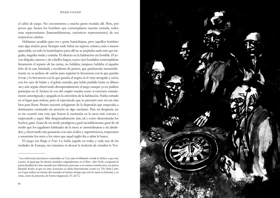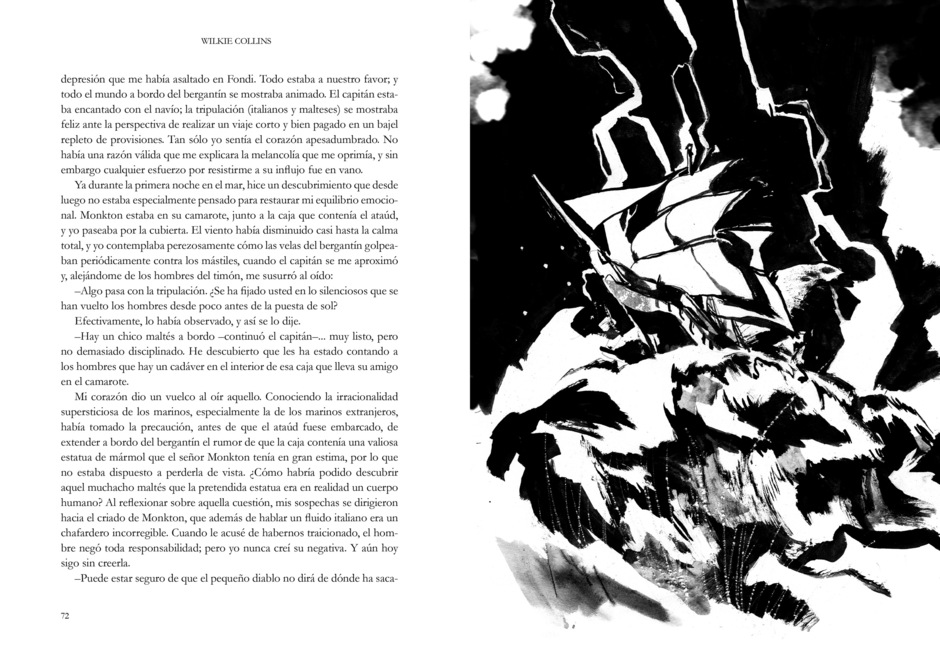 Unos relatos a los que Fidel Martínez se ha acercado con respeto y pasión a partes iguales para regalarnos unas ilustraciones con evocadores trazos negros y grises sobre blanco que, aunque remiten a maestros del dibujo como Alberto Breccia o José Muñoz, demuestran una manifiesta personalidad propia.