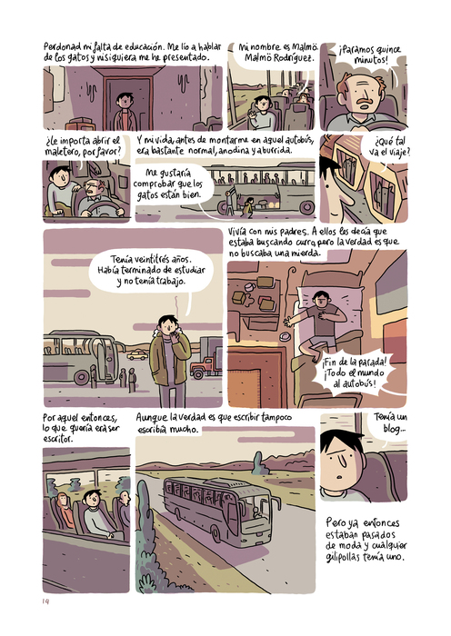 Malmö Rodríguez doesn´t have a job, isn´t in school, and wants to be a writer. He has a couple of black cats he inherited from his uncle, who recently died of a heart attack. A collector of objects relating to murders and other various atrocities is prepared to pay a pretty penny for them, so Malmö decides to travel to his town to sell the cats.