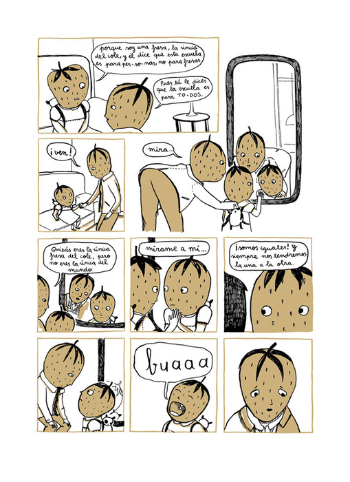 Fresa [Strawberry] is a teenaged girl different from the rest. She doesn’t have many friends and feels left out, precisely because she is a strawberry; and she doesn’t like having a strawberry head like her mother’s at all. The comic starts off with Fresa’s admission to the hospital: she’s in a coma and suffering a strange sort of amnesia. The story starts to unfold on two levels: the reality of the hospital and the chaotic interior world of Fresa, where real memories and fantasies are mixed up.
