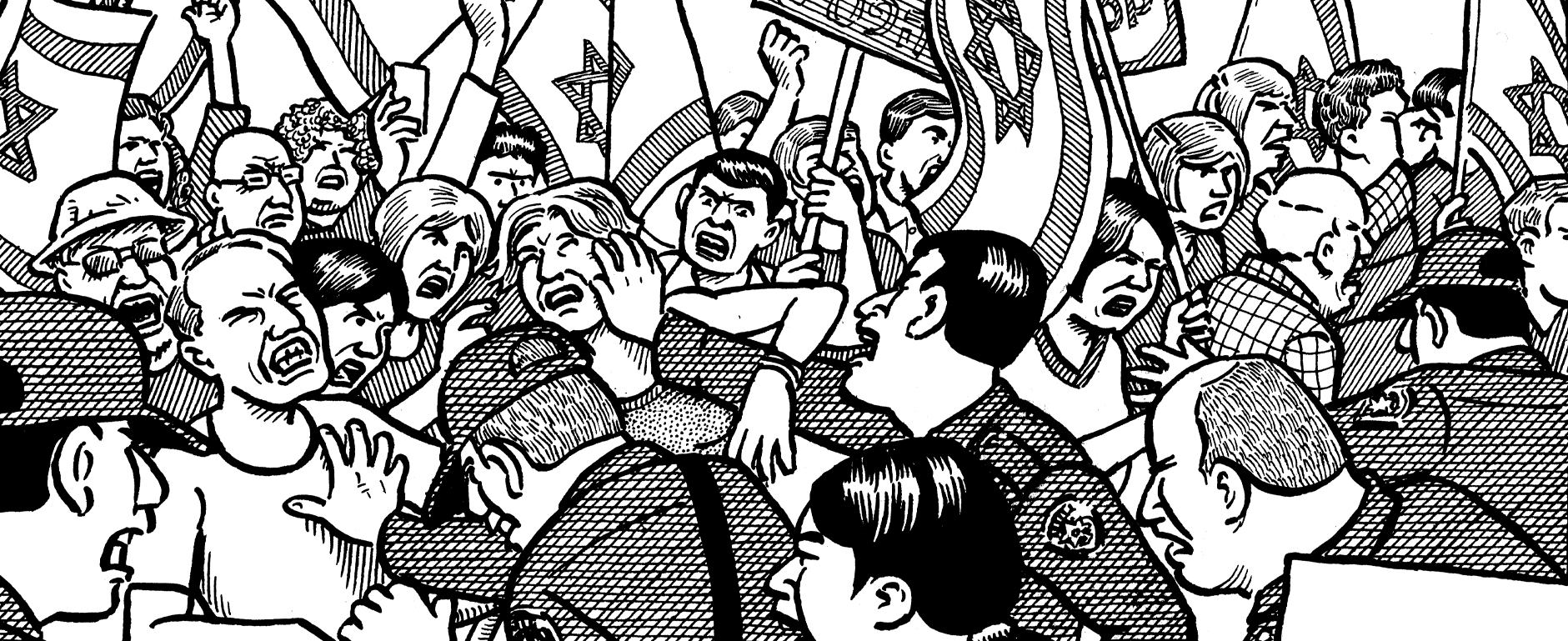 Gerra Gazan es una obra breve, de 32 páginas, un cómic sombrío sobre la violencia de la guerra y sobre la fragilidad de la democracia. Joe Sacco lleva años trabajando sobre el terreno en Palestina (Astiberri publica también en euskera Palestina y próximamente Notas al pie de Gaza) y en su último cómic recoge duras críticas al papel cómplice de los Estados Unidos en este asunto.