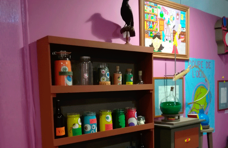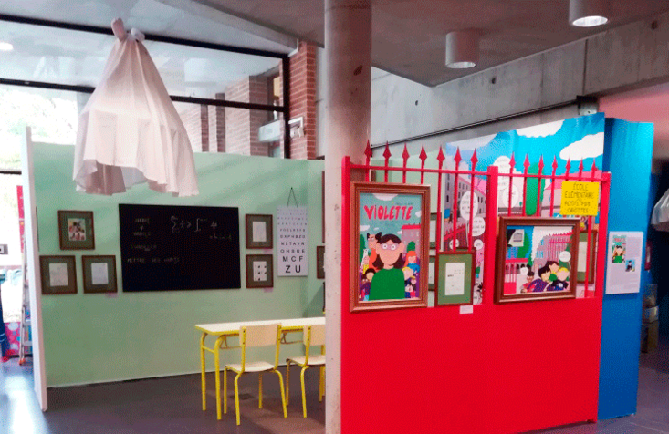 El premio BD Boum se entrega en el Festival de Cómic de Blois y es precisamente en esta ciudad donde se aloja una espectacular exposición dedicada al cómic de Èmilie Clarke. La muestra no solo tiene numerosos dibujos originales de la autora, sino que tiene una parte inmersiva en la que los asistentes pueden pasear por escenarios del cómic como el aula del colegio de Violeta o el misterioso laboratorio secreto en la trastienda del optometrista.