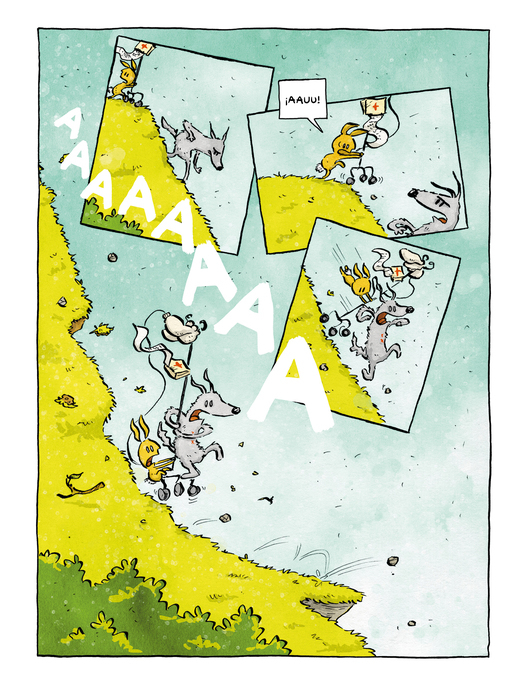 Este solo es el principio de un viaje inesperado, una carrera imprevista. El lobo solitario tiene que cargar con el conejito frágil e ingenuo y a quien aún le quedan cinco meses de tratamiento. Y el cazador y su perrito Thor no les darán tregua. Menos mal que el lobo siempre se las apaña, hasta para conducir un coche, encontrar un motel, escapar de unos moteros o encontrar una cabaña en medio del monte nevado. ¡Cuánta dedicación al código de los lobos!