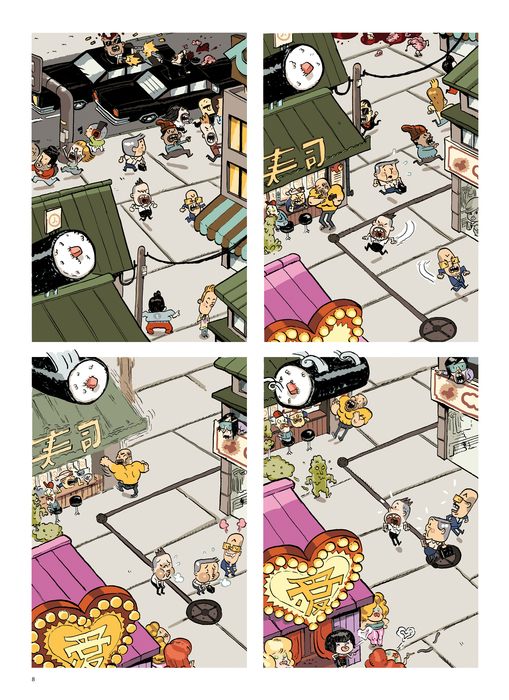 Un anodino oficinista japonés sale del trabajo, sin sospechar que se le viene encima la más loca y disparatada odisea para volver a casa: yakuzas, yokais, sushis gigantes apisonadores, familias caníbales, camioneras enamoradizas, yetis, esqueletos y brujas. El personaje es vapuleado por las circunstancias y vive, o más bien padece, una sucesión de peripecias cómicas sobre las que no tiene ningún control. José Domingo explica que, de cierta forma, “es una metáfora del día a día, lo que te rodea te acaba superando y, al final, de lo que te das cuenta, como el oficinista, es de que lo mejor que puedes hacer es dejarte llevar”.