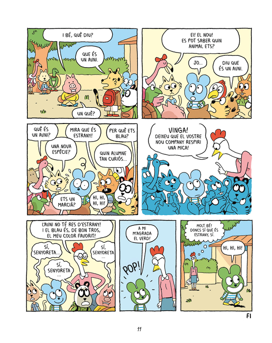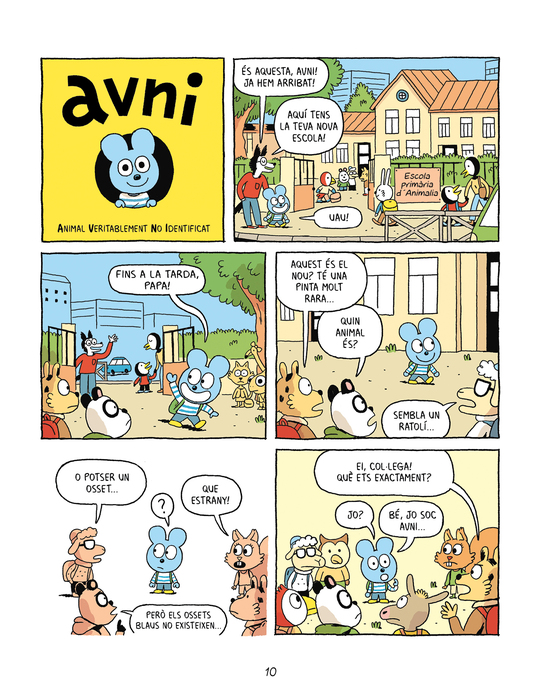 Comença el curs! L’escola de primària d’Animalia acull els seus alumnes en el primer dia de classe i l’Avni busca el seu lloc entre els nous companys. Sembla un inici de curs clàssic, però l’Avni intriga els altres alumnes des del primer minut. No s’assembla a cap dels seus nous petits companys. No és com ells: no és un os, ni un ocell ni una tortuga. I què podem dir dels seus poders extraordinaris, que el converteixen en l’atracció del pati del col·legi, prenent el protagonisme a Lleó el camaleó? L’Avni és un “animal veritablement no identificat” i deixa a tothom desconcertat, commogut i seduït per la seva fantasia i singularitat. I si, al final, no fos més que un gran amic? Un nou petit heroi, simpàtic i amable.