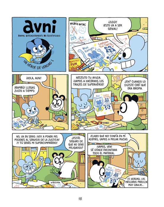Bambú el mejor amigo, Cara la admiradora, Kyle el abusón... Hemos descubierto el mundo de Avni, el nuevo alumno de la escuela primaria de Animalia, en Animal verdaderamente no identificado (Astiberri, 2020). Llegan nuevos gags en el segundo tomo de sus aventuras, que tiene una portada roja como las cartas Monstrofun y que, de nuevo, encierra una doble página final de juegos. Este niño tan especial es muy querido entre sus nuevos amigos, aunque despierta la envidia de algunos y asusta un poco a una nueva alumna: la tigresa Kathy. Desde luego no deja a nadie indiferente y sus amigos le consideran un poco como un superhéroe. Es verdad que tiene superpoderes, ¡y no pocos! Pero Avni no parece ser un justiciero de los de la tele, sus compañeros del patio le ven más bien como un superamigo.