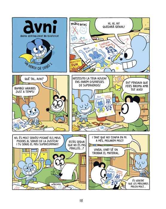 Bambú, l’amic inseparable; Cara, l’admiradora; Kyle, el pinxo… Vam descobrir el món de l’Avni, el nou alumne de l’escola primària d’Animalia, en Animal Veritablement no identificat (Astiberri, 2020). Ara arriben nous gags en aquest segon volum de les seves aventures, que llueix una coberta vermella, com les cartes Monstrofun, i que de nou inclou una doble pàgina final amb jocs. Aquest nen tan especial és molt estimat entre els seus nous companys, encara que desperta l’enveja d’alguns d’ells i atemoreix una mica la nova alumna: la tigressa Kathy. Per descomptat no deixa a ningú indiferent i els seus amics li consideren una mica com un superheroi. És veritat que té superpoders, i no són pocs! Però l’Avni no sembla ser un justicier com els de la tele, els seus companys de pati el veuen més aviat com un superamic.