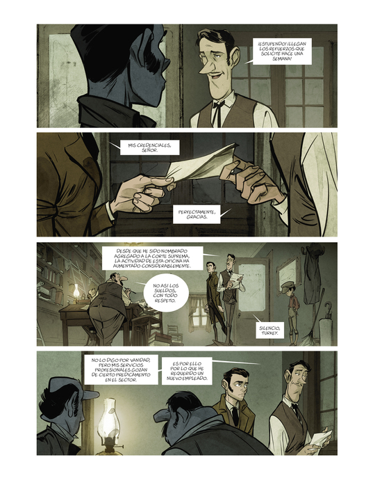 “Virtuoso dibujante, José Luis Munuera magnifica esta inteligente y estimulante reflexión sobre la obediencia y el inmovilismo que anticipa el universo de Kafka”.