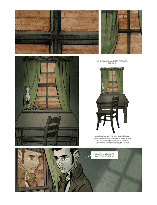 La resistencia de Bartleby es misteriosa. Es la personificación del enigma absoluto. No demuestra ninguna arrogancia, ni rebeldía, sí en cambio una fragilidad obstinada, una cierta melancolía y, tal vez, una sorda desesperanza. José Luis Munuera se apropia del relato de Herman Melville en una adaptación que aporta una mirada singular sobre el texto original, una fascinante historia sobre la obediencia y la resistencia pasiva.