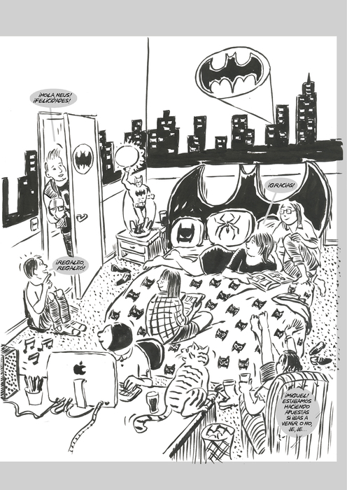 Ramón Boldú cambia el foco, y de su habitual mirada autobiográfica pasa a centrarse en la historia de Alan, un chico transgénero fan de Batman –era conocido como Bat Alan– que, con 17 años de edad y tras sufrir serios problemas de bullying en la escuela, acabó suicidándose. El autor catalán pone luz sobre una tragedia con una nada disimulada vocación de concienciación: servir de ayuda para evitar que se le haga la vida imposible a las personas diferentes hasta tal punto que los agredidos tomen el desesperado camino de quitarse la vida.