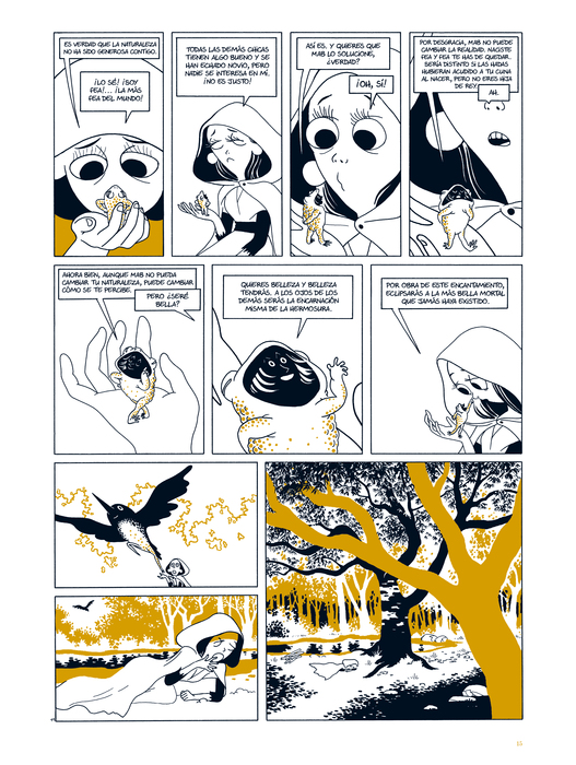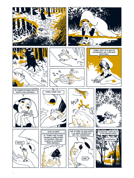 Una fábula en tres actos no exenta de crueldad, recogida aquí en un integral en bitono, en la que el guionista Hubert se inspira en cuentos clásicos para reflexionar sobre las apariencias, con una buena dosis de humor negro. La estética de Kerascoët, los dibujantes de Preciosa oscuridad (Spaceman Books, 2016), mezcla con sutileza iluminaciones medievales, art nouveau y estampas japonesas.