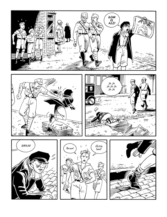 Lutes confiesa que sabía muy poco de la segunda guerra mundial, pero que un vídeo que vio en clase de historia sobre los campos de concentración le impactó profundamente. “La imagen que se me quedó grabada fue la de un bulldozer empujando pilas de cuerpos, pilas de cadáveres demacrados dentro de las fosas”, confiesa horrorizado, y señala que desde entonces ha “tratado de darle un sentido”. Más de una década después, cuando ya había empezado a dibujar Berlín, se dio cuenta de que había canalizado su obsesión hacia la ciudad. Quería entender qué ocurre antes del desastre: “Es el periodo antes de que estalle la tormenta y se desate el infierno”.