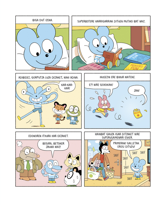“Romain Pujolen gidoiek bete-betean asmatzen dute, eta Vincent Cauten marrazki atseginek are gehiago nabarmentzen dituzte gidoiak. Haur Hezkuntzako edo Lehen Hezkuntzako ikasleek pozik jarraituko diote heroi bihurri eta maitagarri berri honen arrastoari”.