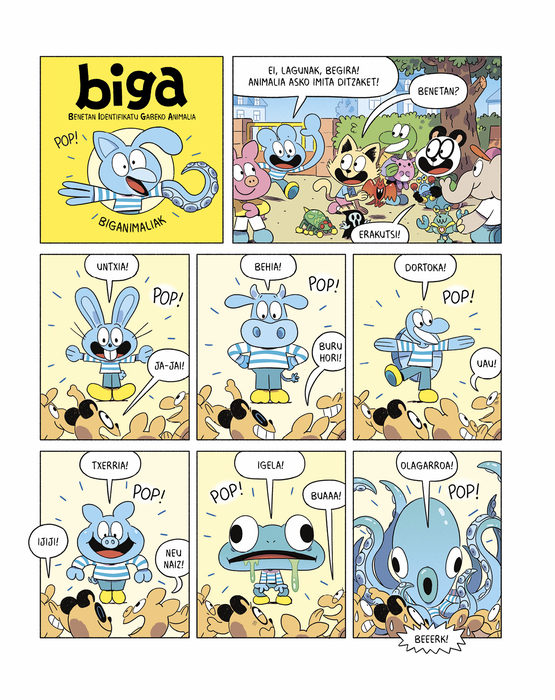 Txantxak sortzeko makina da gure heroi urdinaren abenturen azken liburukia. Biga sailak 30.000 ale baino gehiago saldu ditu Espainian, eta oraingo abentura honetan ere lotsagabeki, umorez eta itxuraldaketa harrigarri ugariz helduko die gaurko umeen arazo eta emozioei, gag samur eta barregarriak tarteko.