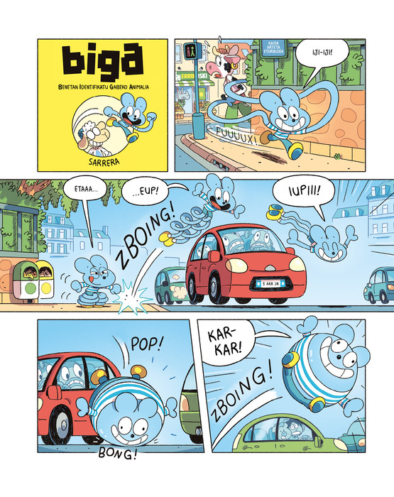 Heldu da Bigaren, botere miresgarriak dituen heroi urdin txikiaren bederatzigarren liburukia. Album honetako abentura batzuk Toboggan aldizkari frantsesean argitaratu ziren aurretik, eta beste hainbeste berariaz sortu dira liburuki honetarako. "Hari gorriak" (albumaren amaierako kontakizun luzea) tristura eta bakartzea jorratzen ditu modu sotilean, dramatismo eta dogmatismorik gabe. Urtearen hasieran, Biga sailaren lehen liburukien berrargitalpenak kaleratu zituen Astiberrik, eta dagoeneko 35.000 ale saldu ditu euskaraz.