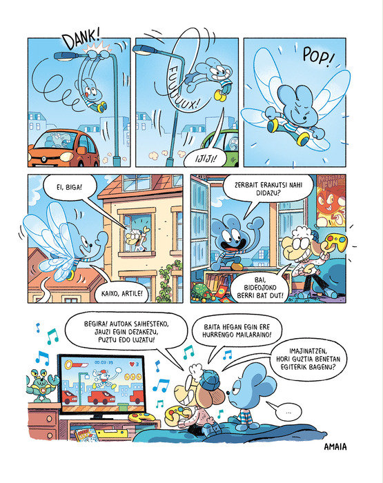 “Vincent Caut-en marrazki samurrek eta Romain Pujol-en gidoiek bete-betean asmatzen dute. Haur edo Lehen Hezkuntzako ikasleek pozaren pozez jarraituko dituzte heroi bihurri eta maitagarri honen abenturak”.