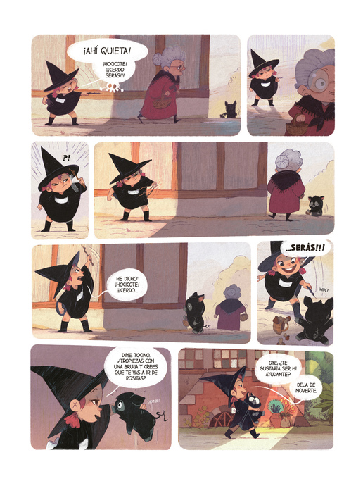 Encontrada en el bosque cuando apenas empezaba a caminar, Bruma es hoy una niña espabilada que tiene un único sueño: ¡convertirse en bruja! El día en que su padre adoptivo le revela que la encontró con un libro secreto, un grimorio mágico, todo queda cristalino... ¿Y si Bruma fuera realmente una bruja? No se hable más, da con un caldero de segunda mano y se dispone a abrir su primera tienda de brujería. Con gran determinación, recluta por el camino a su ayudante, un cerdito negro llamado Hubert, y tiene en su amigo Hugo un compañero de aventuras encantado de ayudarla en esta empresa emocionante.