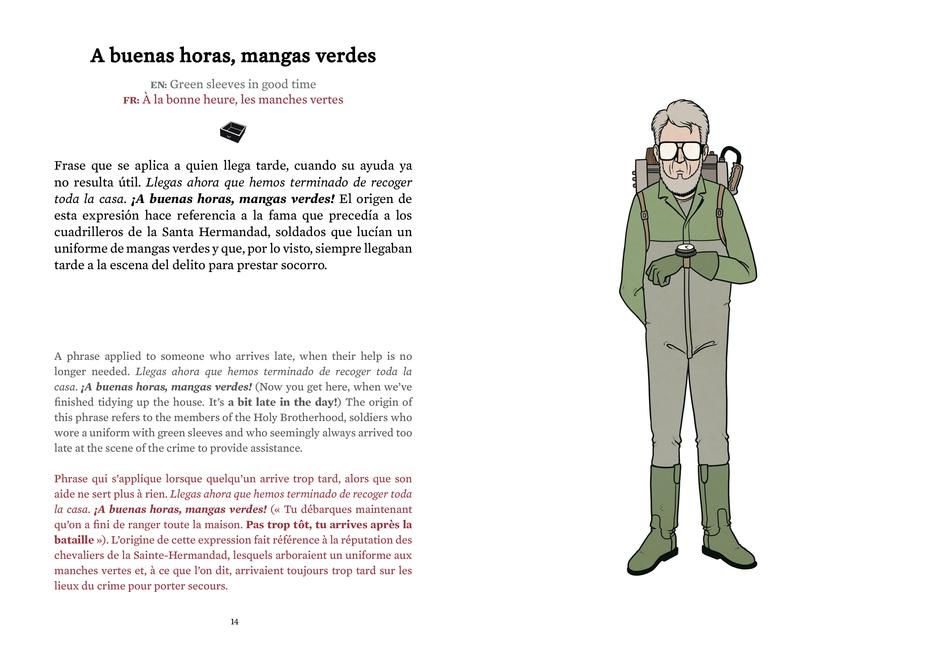 Además, los autores indagan en el origen del lenguaje. Cada locución es descuartizada a conciencia, en un intento de descifrar su etimología, su cómo y su porqué: cuál era el uso inicial de tal locución, en qué contexto se empleaba o cómo ha ido evolucionando a lo largo del tiempo. Una manera de descubrir un idioma y sus raíces a través de sus expresiones más coloquiales.