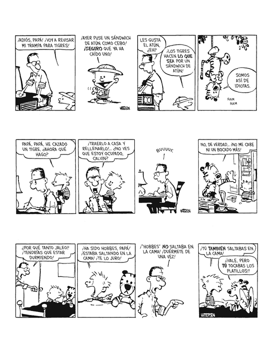 Empezando por el día en que Hobbes cayó en la trampa de sándwich de atún de Calvin, esta nueva entrega de la serie por parte de Astiberri incluye los dos primeros recopilatorios de Calvin y Hobbes, Calvin y Hobbes y Algo babea bajo la cama, tanto las tiras diarias en blanco y negro como las páginas dominicales a color.