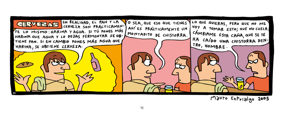 Alberto Benavides, director de Bar&Beer, asegura que “todos –de una manera u otra– hemos mantenido una relación con la cerveza. No hay duda de que el bar es un buen escenario para gags y que la embriaguez de algún personaje puede ayudar a engrasar argumentos. Pero aun con estas premisas, el humor gráfico apenas ha explotado la cerveza y en las pocas ocasiones que lo ha hecho no ha conseguido grandes resultados. De ahí mis temores a la hora de encargar una tira cervecera (...). Cuando veo pegadas en las cajas registradoras de cervecerías y tiendas especializadas alguna de las tiras de Cervezas tengo claro que hemos acertado”.