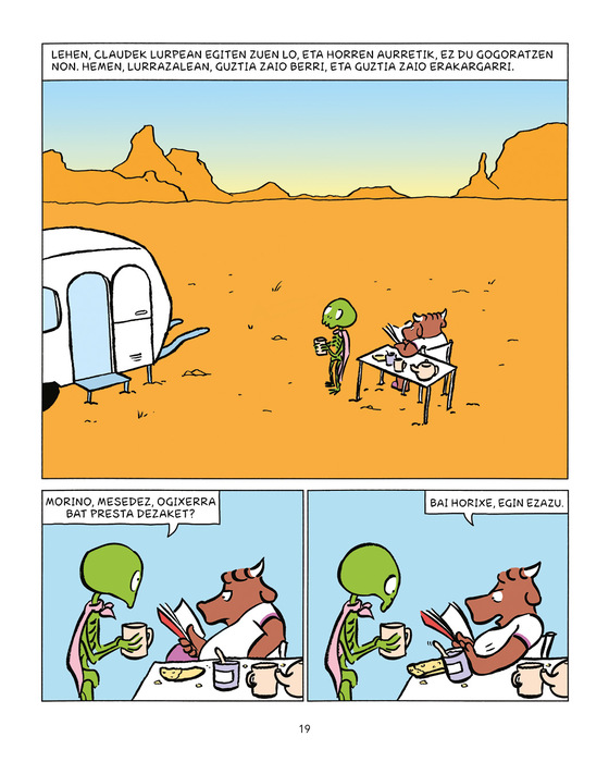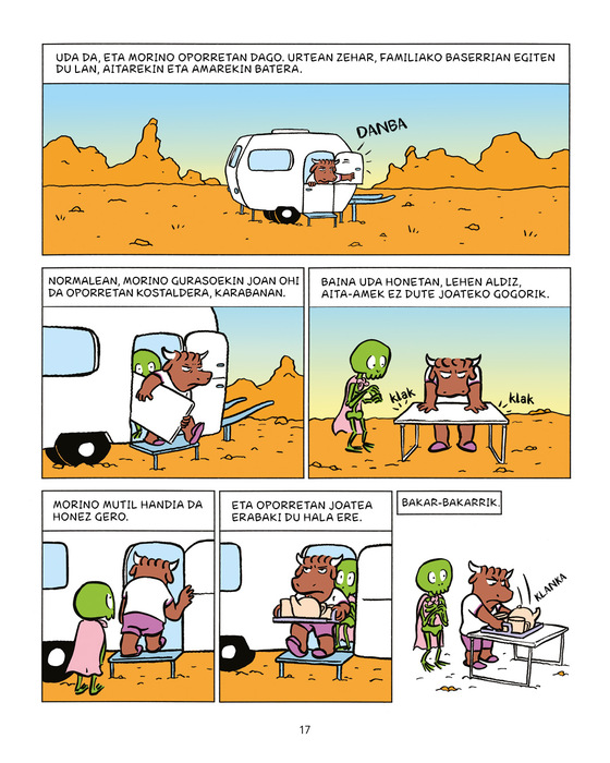 “Kontakizunaren bizitasuna eta umorea guztiz bat datoz ilustrazioekin. Absurdoaren haizeak eraman egiten gaitu, eta hunkitu egiten gara ikustean nolako beharra duten bata bestearena”.
