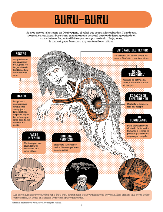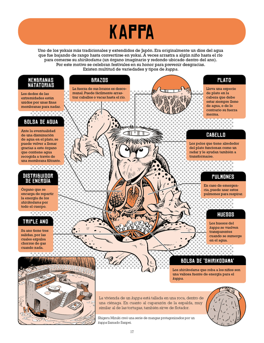 Los yokais son seres sobrenaturales que pueblan el folclore japonés desde hace siglos. Shigeru Mizuki, uno de los autores de manga más conocidos en Japón y apasionado desde niño por esos monstruos, dibujó en los años 60 más de ochenta cortes anatómicos de yokais para arrojar luz sobre su apariencia, sus costumbres y su hábitat, y sobre todo estudiar sus órganos y sus poderes. Si Enciclopedia Yokai, también de Mizuki (Ediciones Satori, 2018) aporta datos sobre la cultura de esos seres mitológicos, Dentro de los yokais se adentra en cada uno de ellos, con mirada de cirujano e ilustraciones apabullantes.