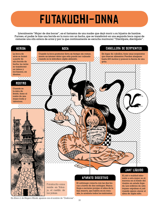 Los yokais siempre han estado presentes en la obra de Mizuki: en su premiado cómic NonNonBa (Astiberri, 2010) recuerda las leyendas que le contaba de niño una anciana de su pueblo natal; en Kitaro (Astiberri, 2010-en curso), su serie más popular, se enfrentan humanos y yokais; aquí disecciona cada uno de esos seres mágicos, con textos de apoyo del propio Mizuki, que combinan un tono científico y divertido. Gracias a su trabajo, las generaciones de la posguerra volvieron a descubrir el universo de los yokais, una parte del patrimonio cultural japonés abandonado y olvidado en un país ansioso por modernizarse tras la derrota. Mizuki se documentó durante años a través de historiadores y etnólogos para recuperar e inventariar esas criaturas fantasmales que marcaron su imaginario y su obra.