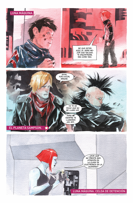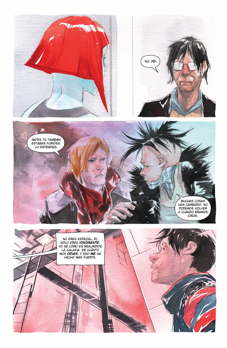 Jeff Lemire confiesa que una de las cosas que le atraen de la ciencia ficción y a la que ha dedicado mucho tiempo es la construcción de este universo al que, en su opinión, “Dustin consigue insuflar vida de una manera mucho mejor que lo que yo hubiera podido imaginar. Para mí –termina Lemire– es una metáfora de las cosas que me importan en la vida real y la construcción de un universo imaginario en torno a eso”.