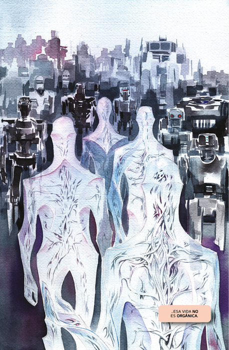 En este tomo final, las diversas facciones que han estado persiguiendo a TIM-21 por fin se concentran alrededor del planeta oceánico Mata, mientras los robots emprenden su revolución galáctica. Pero nada puede preparar al joven androide Tim, ni a los lectores, para lo que va a pasar. Jeff Lemire y Dustin Nguyen ponen así fin a la saga Descender con un ritmo frenético y responden a todas las preguntas que los lectores han ido planteándose a lo largo de los cinco volúmenes anteriores. Emotivos y esperados reencuentros, nuevos universos, historias del pasado y lecciones sobre la convivencia para hacer de Descender 6. Máquina de guerra no sólo el fin de una era, sino también la plataforma de despegue de la siguiente aventura, en la que están ya trabajando los autores.