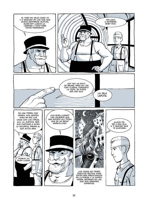 “El dibujo de Paco Roca resulta tan agradable y rico como su historia. [...] El trazo ha ganado en elegancia y la bicromía le da un aire antiguo apropiado para esta historia que mezcla hábilmente la barbarie de los hechos que vive el país y la belleza de los universos imaginarios que suscita la literatura, desde Don Quijote hasta La isla del tesoro”. Actua BD