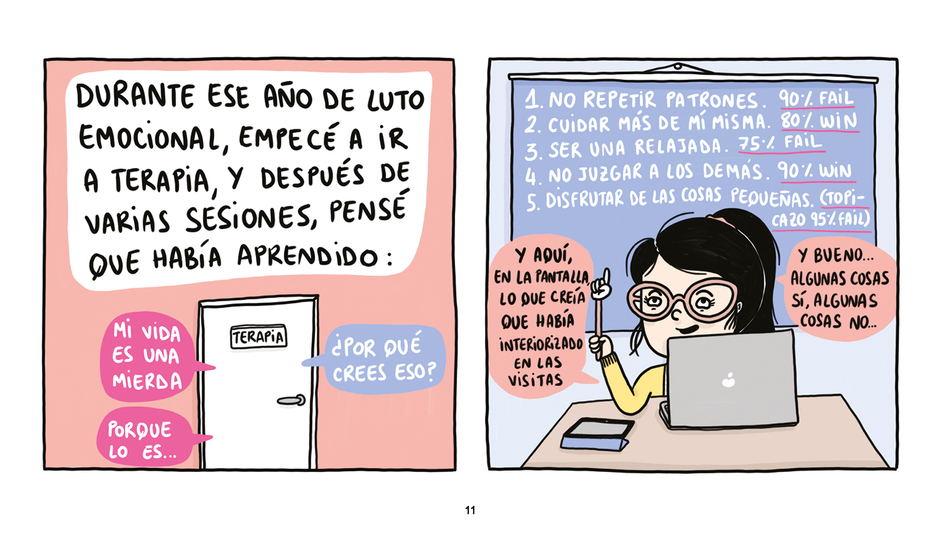 El ilustrador Pep Montserrat asegura que este cómic que “muestra los esfuerzos que podemos llegar a hacer en el intento de mantener la fe alta, a pesar de que las evidencias nos griten a la cara que estamos con la persona equivocada, es la consecuencia del uso terapéutico de las leyes de IG para construir un relato en primera persona y a tiempo real de una relación frustrada”. “Escrita con la soltura, la claridad, la capacidad de síntesis y el humor con los que Elisa hace todo –subraya el propio Montserrat–, esta historia demuestra una vez más que si el futuro en general puede ser cuando menos incierto, el de ella y todas las mujeres que como ella están inventando nuevas formas de contar lo que vivimos es, sin duda, brillante”.