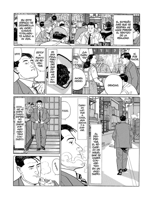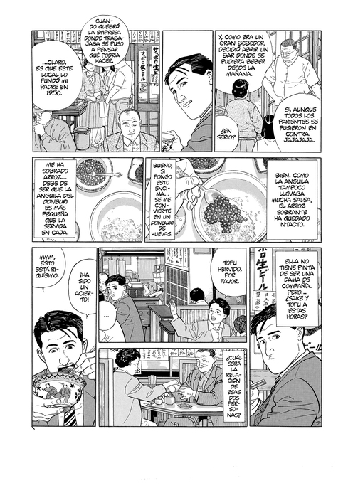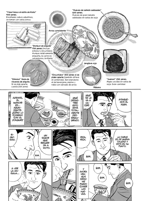 “La perspicacia visual del protagonista, su capacidad para diseccionar sabores y su talento para conjeturar sobre los comensales que le rodean dan lugar a un auténtico festín descriptivo servido con el típico tempo taniguchiano. Una extraña cadencia aparentemente pausada que le permite capturar el detalle y que al mismo tiempo devuelve al lector al placer de la observación”.