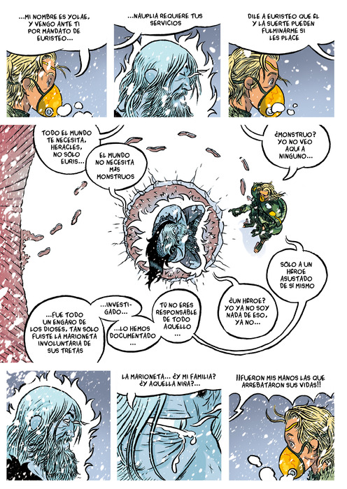 La razón primera de David Rubín a la hora de recrear un mito como el de Heracles no es otra que la de dar su visión sobre el mundo de los superhéroes: “siempre me han gustado, aprendí a leer con ellos, pero ya desde hace años, salvo contadas excepciones, me aburren soberanamente, y creo que iba siendo hora de que alguien intentara recuperar ese sentido de la maravilla que para mí se está perdiendo en los tebeos de superhéroes actuales”, precisa el autor gallego.