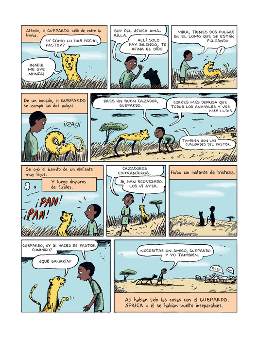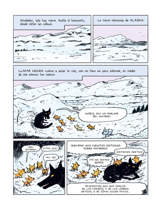 El ojo del lobo fue originalmente una novela del escritor francés Daniel Pennac publicada en 1984 y que lleva vendidos más de 2 millones de ejemplares. En España, acaba de ser publicada una nueva edición por la editorial Algar. A pesar de estar escrita hace cuarenta años, trata de temas tan actuales como la migración, la repercusión de las actividades humanas sobre el entorno o el (mal)trato a los animales. La adaptación es obra del francés Mathieu Sapin, un curtido autor de cómic con más de 25 años de carrera durante la cual ya ha realizado varias adaptaciones literarias (Condesa de Segur, H. P. Lovecraft, Tomi Ungerer, etc.). Este álbum de hecho se cierra con un cuaderno gráfico en el que Sapin explica con sencillez y honestidad cómo ha sido el trabajo de adaptación de El ojo del lobo, que le ha llevado a entrevistarse en varias ocasiones con Pennac.