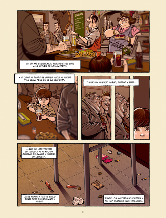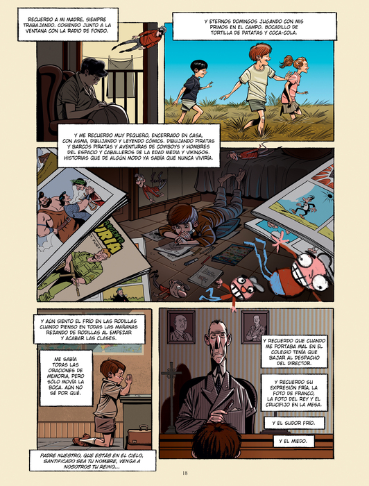 Y es que Miguel Francisco, que acaba labrándose una carrera internacional en el ámbito de la animación y en el diseño de videojuegos –es el principal creador de los personajes de Angry Birds–, decide retomar a miles de kilómetros de su Badalona natal su primer amor creativo, que le llevó desde los 15 años a dibujar historietas en revistas de la editorial Bruguera, para intentar saldar una cuenta pendiente con el pasado: “Mi padre me contaba historias, casi siempre las mismas, quizás más para oírlas él mismo que para un público como yo, tan pequeño que apenas entendía nada. Pero aun así, sin entender mucho ni de política ni de guerras, había cosas que me dejaban un poso de incertidumbre cuando preguntaba más sobre aquellos tiempos y siempre había un silencio por respuesta, un vacío, un espacio en blanco”.