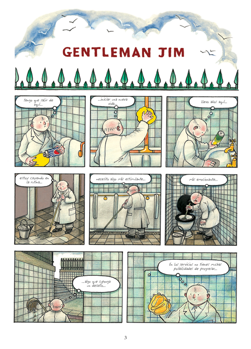 Gentleman Jim es la historia de Jim Bloggs, un limpiador de aseos que sueña con cambiar de vida, ponerse a prueba y dedicarse a un oficio más emocionante como soldado, artista, vaquero o dinámico ejecutivo de una multinacional. Animado por su esposa, también dispuesta a poner un poco de aventura en sus vidas, Jim se lanza a convertir sus sueños en realidad para descubrir que la vida es más complicada de lo que parece. Buena parte del humor del libro se debe a la incapacidad de Jim y su esposa para entender el mundo que los rodea y ver cómo sus planes caen por tierra uno tras otro debido a la rigidez de las normas sociales.