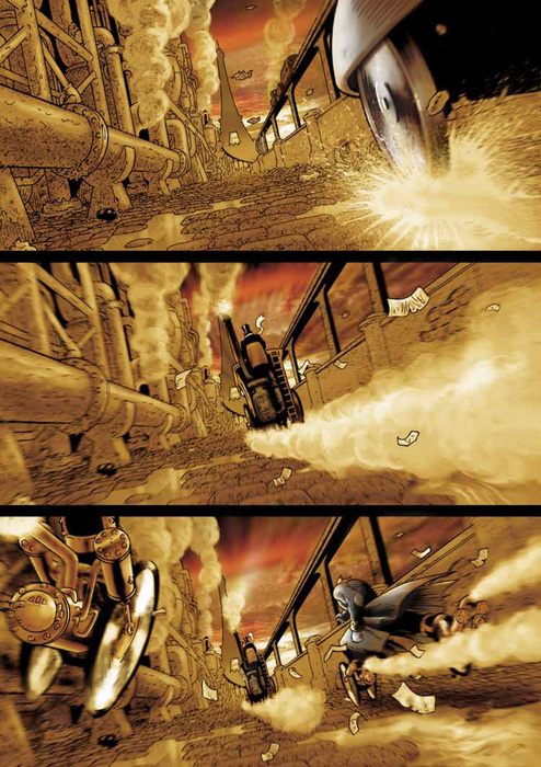 Grandville es un thriller retrofuturista en la que el inspector LeBrock de Scotland Yard persigue a una banda de implacables asesinos en el París de la Belle époque...