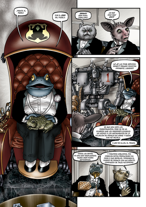 En Toad Hall, guarida del multimillonario barón Aristóteles Krapaud, una camarilla de industrialistas y gatos gordos planean el derrocamiento del Estado francés con la intervención de temibles autómatas armados. Mientras tanto, el brutal asesinato de un famoso artista parisino, misteriosamente apuñalado en su estudio cerrado, es objeto de la investigación del tenaz inspector LeBrock de Scotland Yard y su fiel adjunto, el detective Roderick Ratzi.