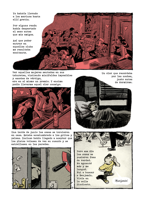 Ciudad de Palma, años 80. Cada esquina del barrio chino tiene una historia que contar. Gabi, el aún adolescente protagonista, deambula por las calles de su pequeño mundo junto a sus amigos Benjamín, Arnaud, Falen, Ramos…, tratando de entenderlo y de entenderse. Así, prueba las drogas, descubre el sexo, se refugia en la literatura y el dibujo, se siente más unido a sus amigos que a su propia familia, descubre que las diferencias sociales son también fronteras, y que éstas, a veces, son infranqueables. Éste es el marco en el que se mueve Historias del barrio, una novela gráfica realizada a cuatro manos entre Gabi Beltrán y Bartolomé Seguí.