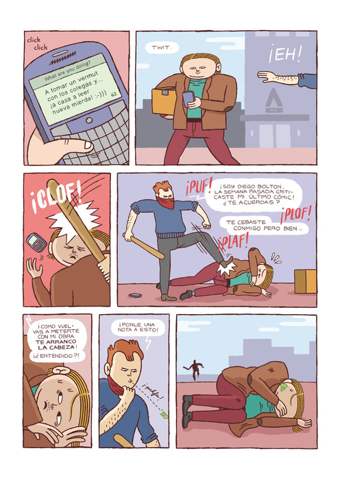 Infame está escrito y dibujado por Néstor F, uno de los responsables de Moowiloo Woomiloo (Entrecomics Comics, 2012) y premiado cortometrajista de piezas como Literalmente, Palito o Funny Webcam Effects. “No considero Infame un tebeo sobre el mundo de la crítica –comenta Néstor–. Sólo he usado el tema como punto de partida. Llega un momento en que la historia no tiene nada que ver con esto y creo que, al final, el cómic tiene una moraleja más universal. Moraleja, o algo parecido”.