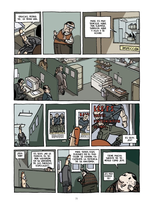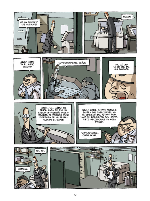 “El inspector Moroni es un concentrado de las neurosis de nuestra sociedad. Su oficio le permite utilizar su sentido analítico, que cree infalible. Pero su tendencia paranoica le encierra en un mundo en el que sólo ve complots y tejemanejes. Las divertidas aventuras de un Harry el Sucio con tranquilizantes”. BD Gest