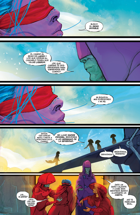 “También nos hemos desviado conscientemente de algunos de los temas típicos del género”, apunta G. Willow Wilson y añade que Invisible Kingdom “es una historia sobre lo que significa tener fe en lo que no podemos ver: la lealtad de nuestros amigos, la verdad de nuestras causas, y la posibilidad del cambio”.