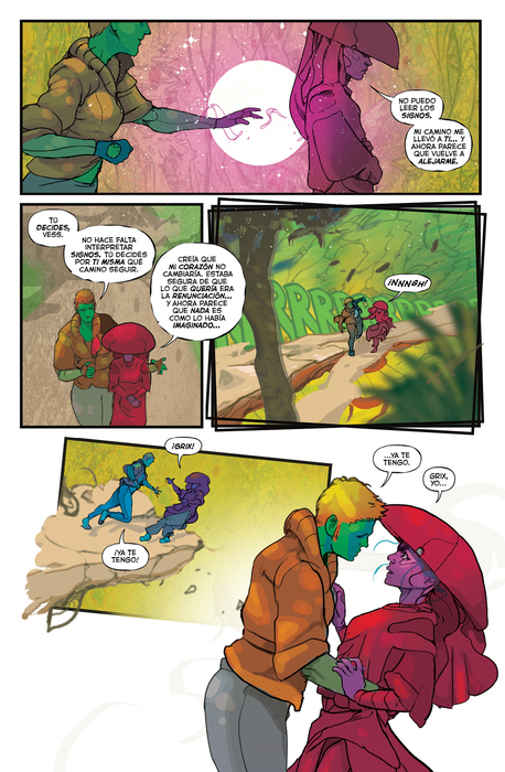 G. Willow Wilson y Christian Ward han preparado un final explosivo en el que las protagonistas de la saga deberán tomar partido. ¿Elegirá Vess la destrucción o el amor? Y Grix, ¿se atreverá a lo imposible contra viento y marea? Las luchas del yo se enfrentan a las causas terrenales con una dosis extra de explosiones y masas enfurecidas.